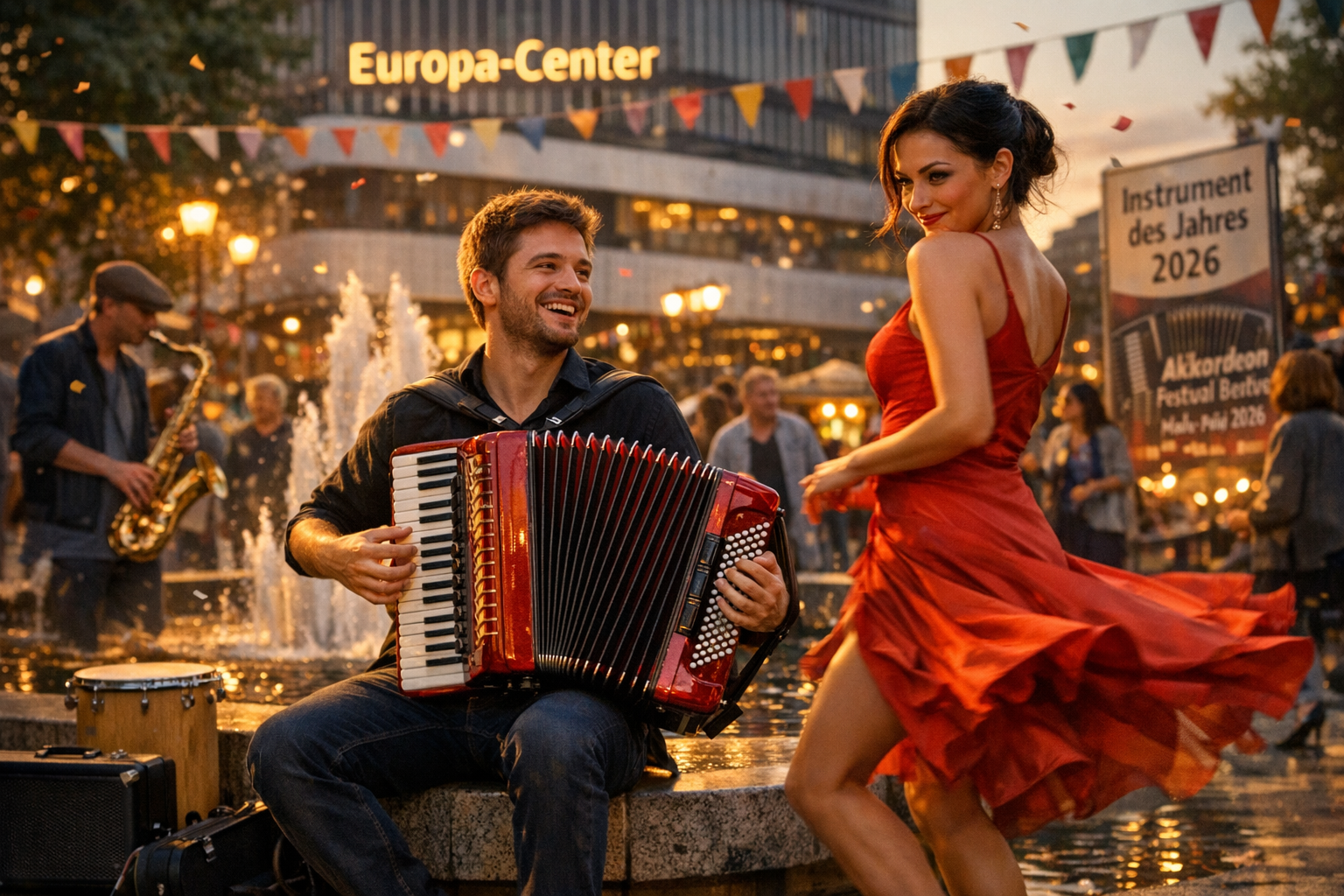 - „600 Akkordeons“ im Europa-Center: Ein großes Community-Projekt mit Massen-Performances, Probierstationen und Präsentationen regionaler Musikschulen.